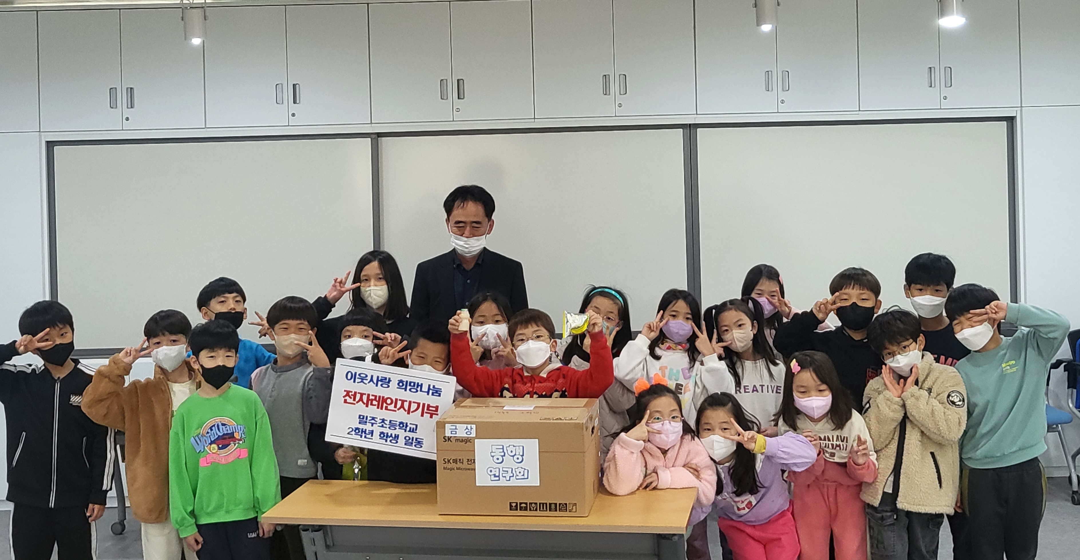 학생들과 담임은 “부상으로 받은 전자레인지를 모두의 의견을 모아 관내 어려운 분에게 기부를 결정하게 됐고, 아이들에게 나눔의 기쁨을 느끼게 해줄 수 있는 계기가 된 것 같다”라고 말했다.